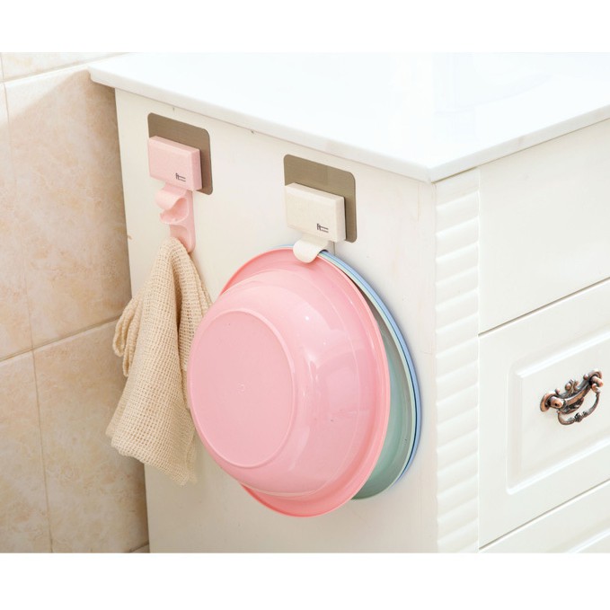 Móc Nhựa Dán Tường 2 tầng Treo Thau Chậu, Khăn tắm, Đồ Nhà Bếp, phòng tắm