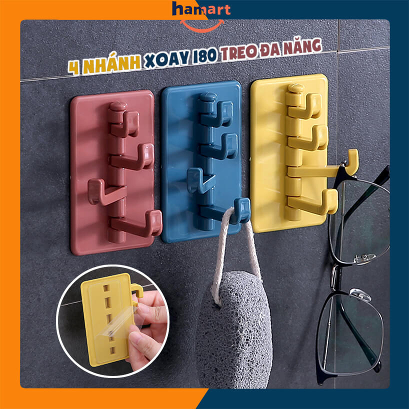 Móc Nhựa Dán Tường 4 Nhánh Móc Treo Đồ Đa Năng Kèm Miếng Dán Trong Suốt Siêu Chắc Tiện Lợi