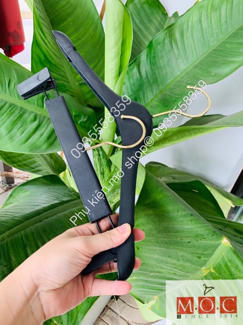 móc áo nhựa đen hoặc móc kẹp nhựa đenCông dụng: treo quần áo tại nhà, các shop, gian hàng,...