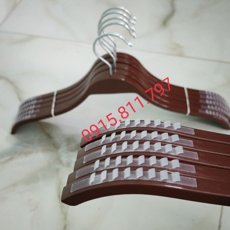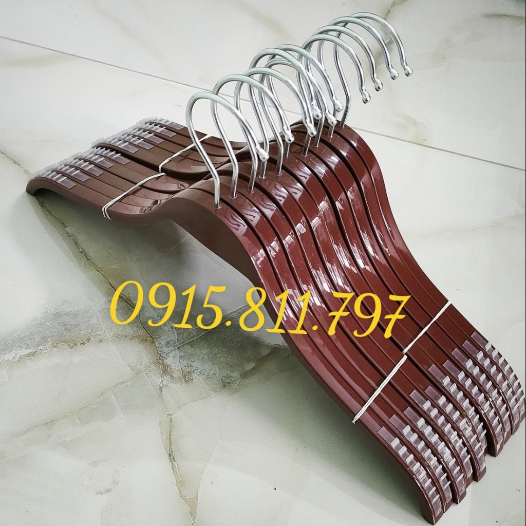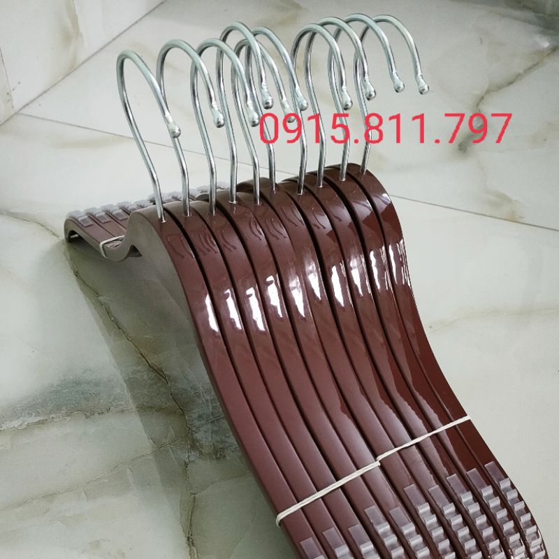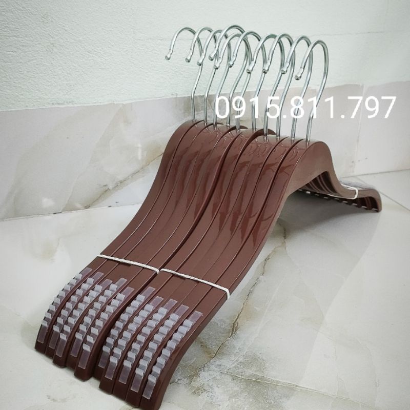 Móc nhựa nâu dáng tre vai đệm chống trơn tuột - mắc treo quần áo siêu bền, kích thước rộng vai 38cm,đầu móc xoay 360 độ