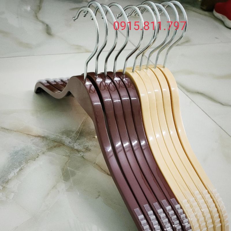 Giới thiệu Móc nhựa nâu dáng tre vai đệm chống trơn tuột - mắc treo quần áo siêu bền, kích thước rộng vai 38cm,đầu móc xoay 360 độ
