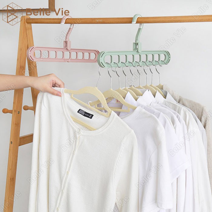 Móc Nhựa Phơi Đồ Treo Quần Áo BELLEVIE Thiết Kế 9 Lỗ Treo Xoay 360 Độ Thông Minh Tiết Kiệm Không Gian