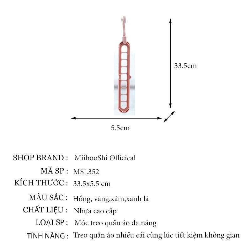 Giới thiệu Móc nhựa treo quần áo, thanh treo quần áo thông minh 9 lỗ đa năng tiết kiệm diện tích MSL352