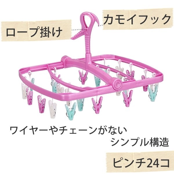 - Móc gồm 24 kẹp, phần móc treo có thể xoay 360 độ, giúp không hư hại khi gặp gió lớn.