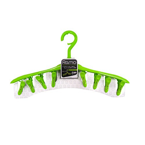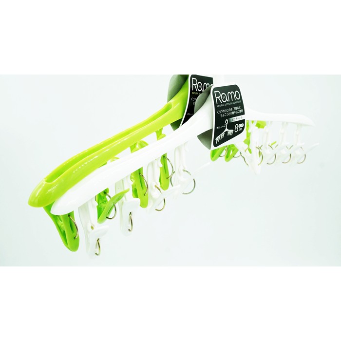 Móc phơi 8 kẹp màu xanh xuất xứ Nhật Bản Đầu móc treo có khóa gài- Chất liệu: nhựa cao cấp