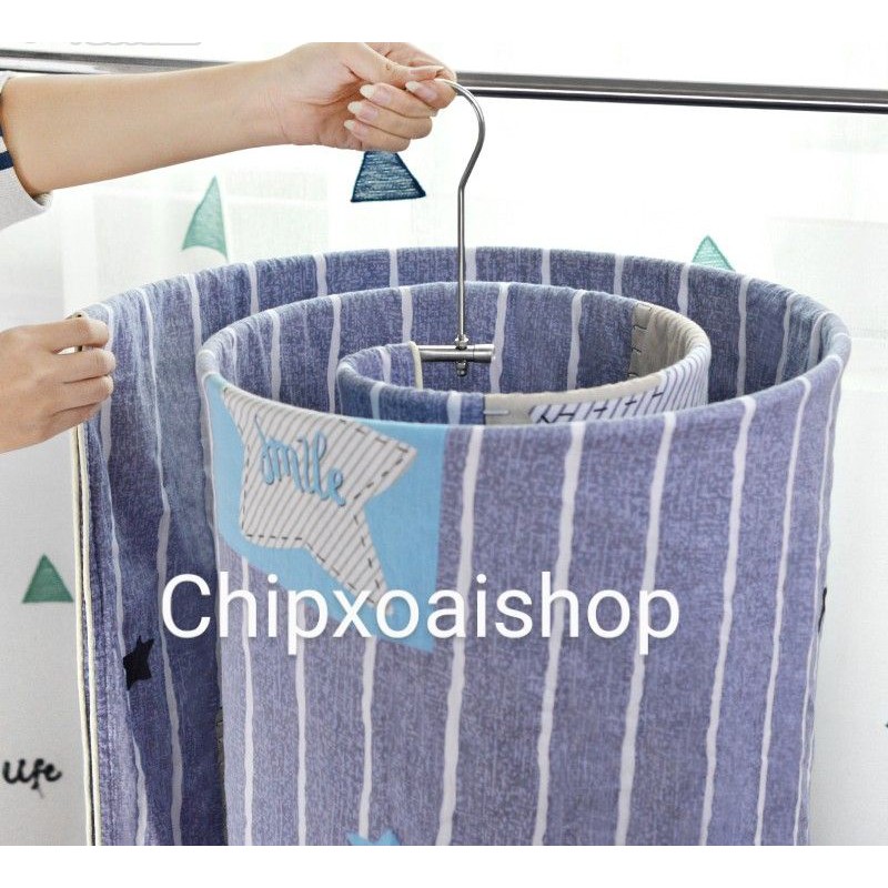 Gập tấm chăn hoặc ga làm đôi, bắt đầu luồn từ đầu vào của móc treo và trải đều theo thân móc.