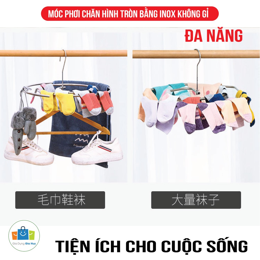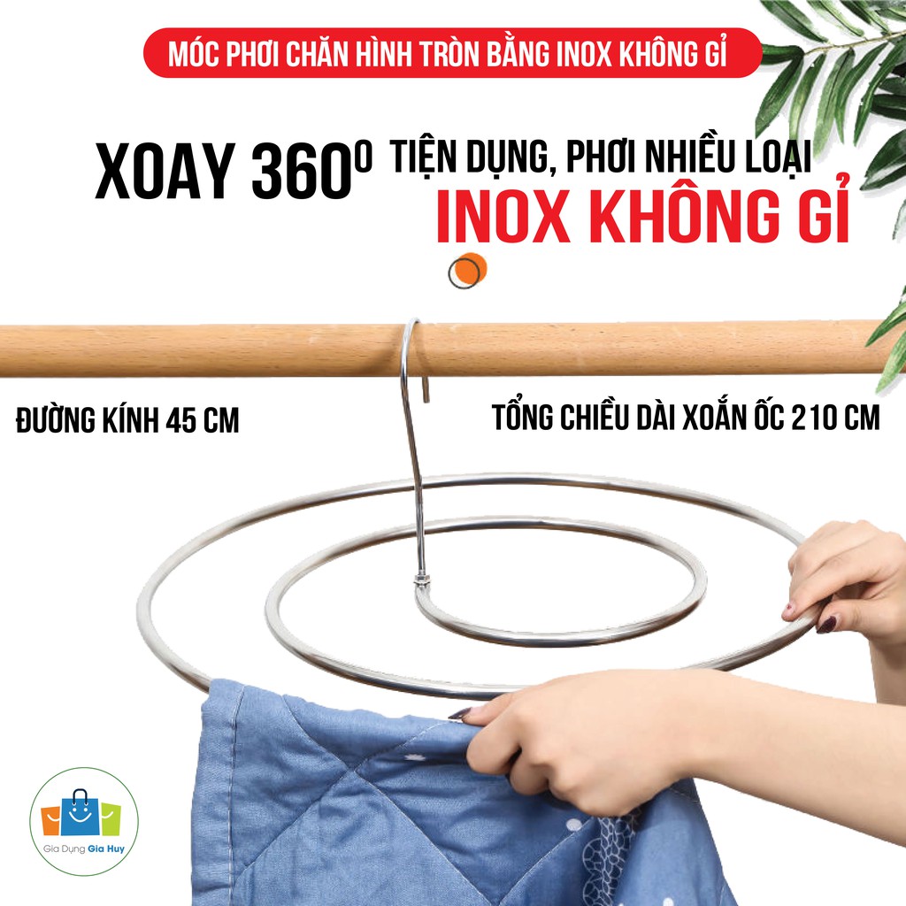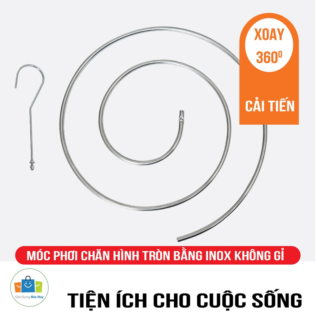 Giới thiệu Móc phơi chăn hình tròn bằng INOX 304 không rỉ tiện lợi dang xoắn, móc treo chăn mền chịu lực cao GIA HUY