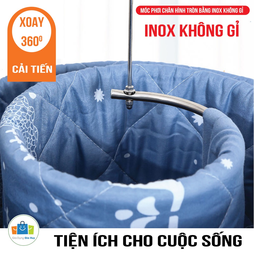 Móc phơi chăn hình tròn bằng INOX 304 không rỉ tiện lợi dang xoắn, móc treo chăn mền chịu lực cao GIA HUY