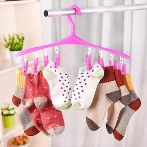 Công dụng: Móc gồm 8 chiếc kẹp nhỏ dùng để phơi khăn tay, tất, găng tay, khăn len, khăn mặt... rất tiết kiệm diện tích, đầu móc có khóa giữ cố định giúp cho móc cố định tại một điểm không bị bay hoặc rớt.