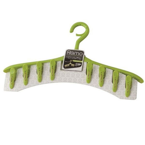 Móc gồm 8 chiếc kẹp nhỏ giúp bạn phơi khăn tay, tất, găng tay, khăn len của bé mà không lo bị rơi giù trời gió to.