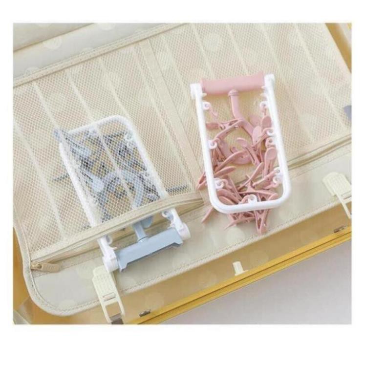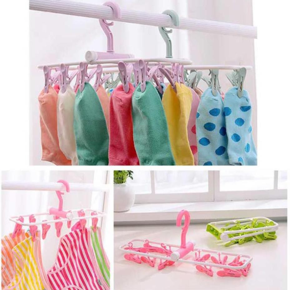 Móc quần áo ⚡ Móc treo quần áo - Móc chùm 12 kẹp - Màu ngẫu nhiên🌤️🌤️🌤️ Móc có thể gấp gọn, xoay 360 độ, phơi tất, vớ, đồ lót, kẹp đồ cho bé và người lớn...