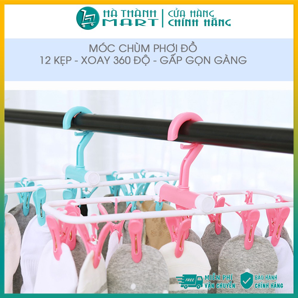 Móc phơi đồ, Móc treo quần áo [FREE SHIP] Móc chùm 12 kẹp, bền đẹp, gấp gọn - Xoay 360 độ