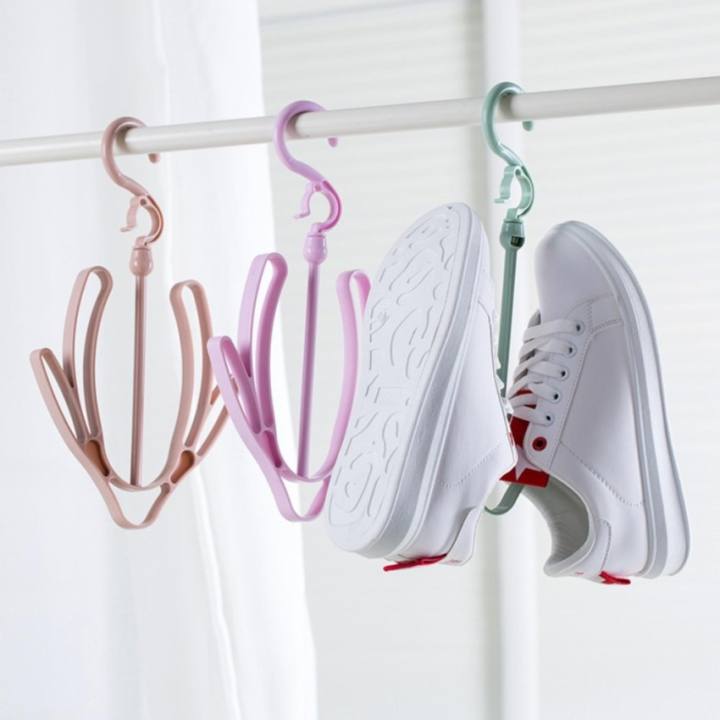 Móc phơi giày dép đa năng, tiện lợi thông minh, móc nhựa dày dặn cao cấp, nhiều màu (GIAO MÀU NGẪU NHIÊN)Thiết kế với 2 móc nhựa 2 bên, móc sâu vào bên trong giày, dép, giúp thoát nước nhanh rút ngắn thời gian làm khô giày