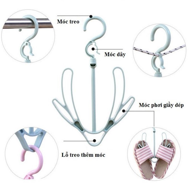🎈Móc phơi giày dép tiện lợi, được thiết kế kiểu dáng tinh tế thông minh với 2 đầu móc xoay 360 độ giúp giày dép mau khô, sạch sẽ,