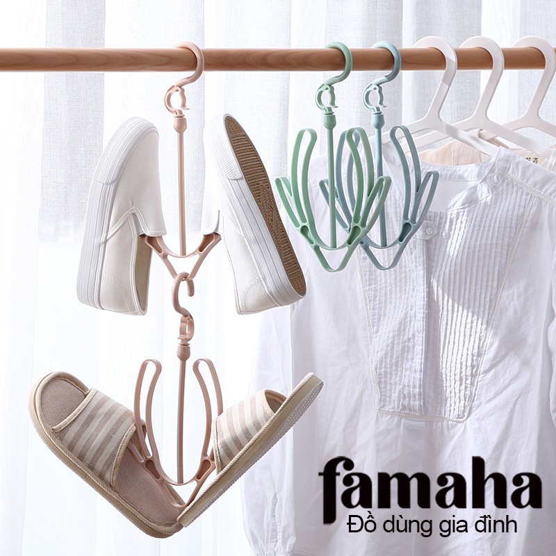 Móc phơi giày dép thông minh xoay 360 độ bằng nhựa cao cấp, móc phơi giày đa năng FAMAHA