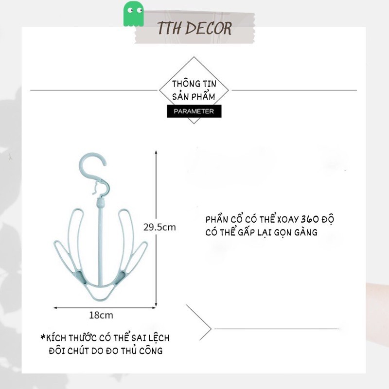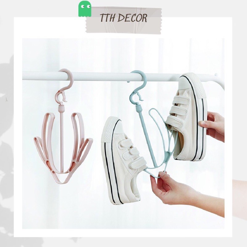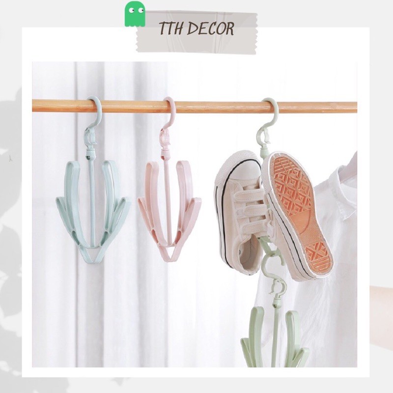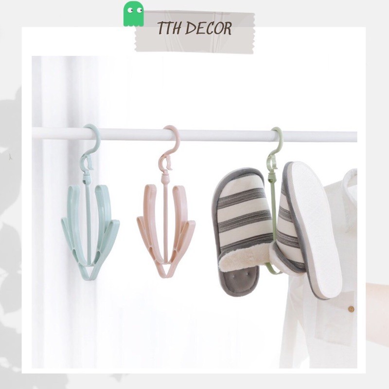 Móc treo phơi giày dép với thiết kế nhỏ gọn tiện lợi, phần cổ có thể xoay 360 độ, có thể gấp gọn kho sử dụng xong không chiếm diện tíchKích thước: 29.5*18cm