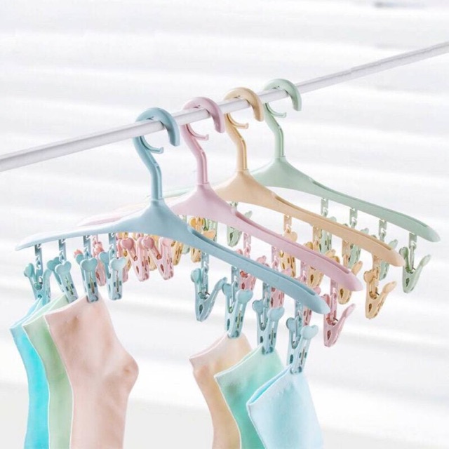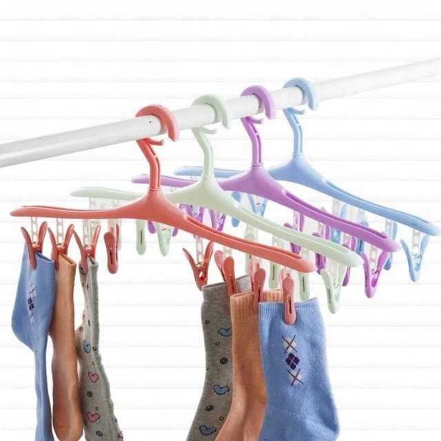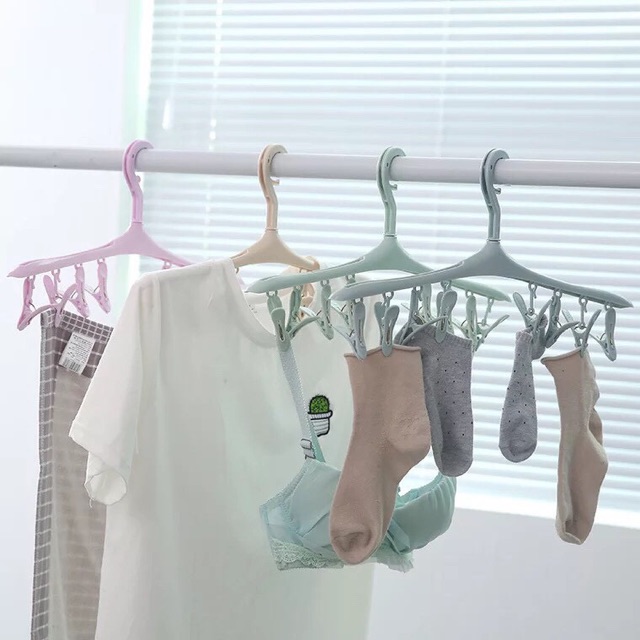 ✅Móc phơi quần áo đa năng 8 kẹp giúp bạn treo tất, đồ lót dễ dàng.