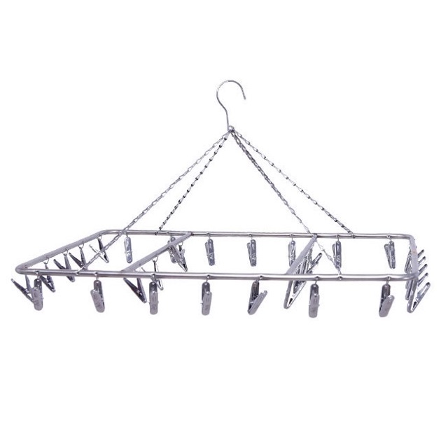 -Móc Phơi Quần Áo Inox Chùm Chữ Nhật Kèm 32 Kẹp Inox tiện lợi giúp bạn có thể phơi khăn, phơi tất, vớ , khẩu trang, khăn sữa , yêm ăn , đồ em bé... dễ dàng mà không sợ bị gió thổi bay.