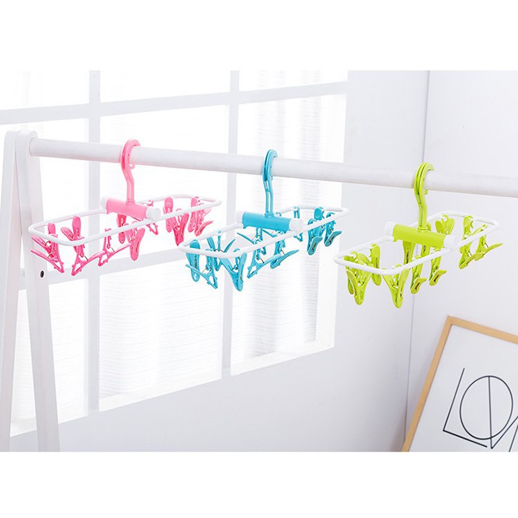Móc Phơi Quần Áo, Móc Chùm Phơi Tất, Áo Lót Đa Năng 12 Kẹp