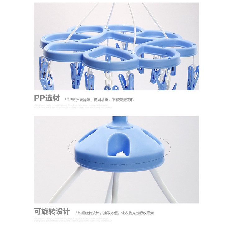 thiết kế móc treo 360 độ giúp ngăn chặn hiệu quả quần áo bị gió thổi mạnh, tránh rơi rớt đồ