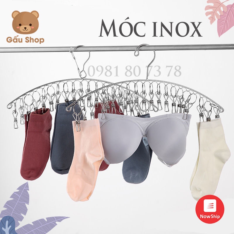Nhà cửa & Đời sống > Sắp xếp nhà cửa > Mắc áo || Móc phơi quần áo, treo tất vớ inox 8-10-20 kẹp chống rơi - SGCòn hàng