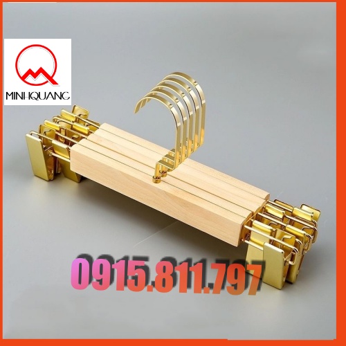 Móc treo quần áo - kẹp gỗ mộc có phần k.ẹ.p 2 bên và đầu móc mạ vàng có lớp đệm giữa siêu êm,sang chảnh