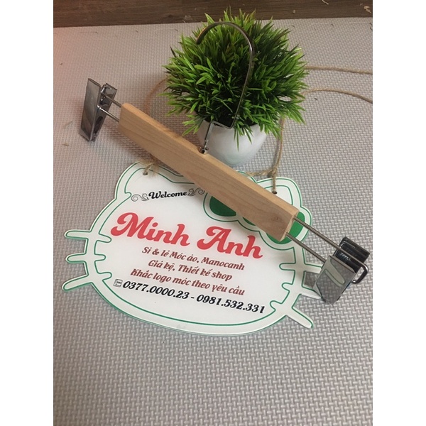 móc quần gỗ mộc kẹp inox sáng bóng ko gỉ kết hợp đầu móc xoay 360 độ cực kỳ đẹp và chắc chắn