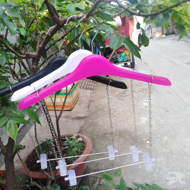 Móc set bộ kiểu dành cho các shop thời trang, shop online treo đồ bộ, phối đồ theo set.Thiết kế rất chắc chắn và đặc biệt là đẹp, kẹp xích phối với móc áo vai to giúp áo thẳng, bẹ áo đưa ra thẳng vai.
