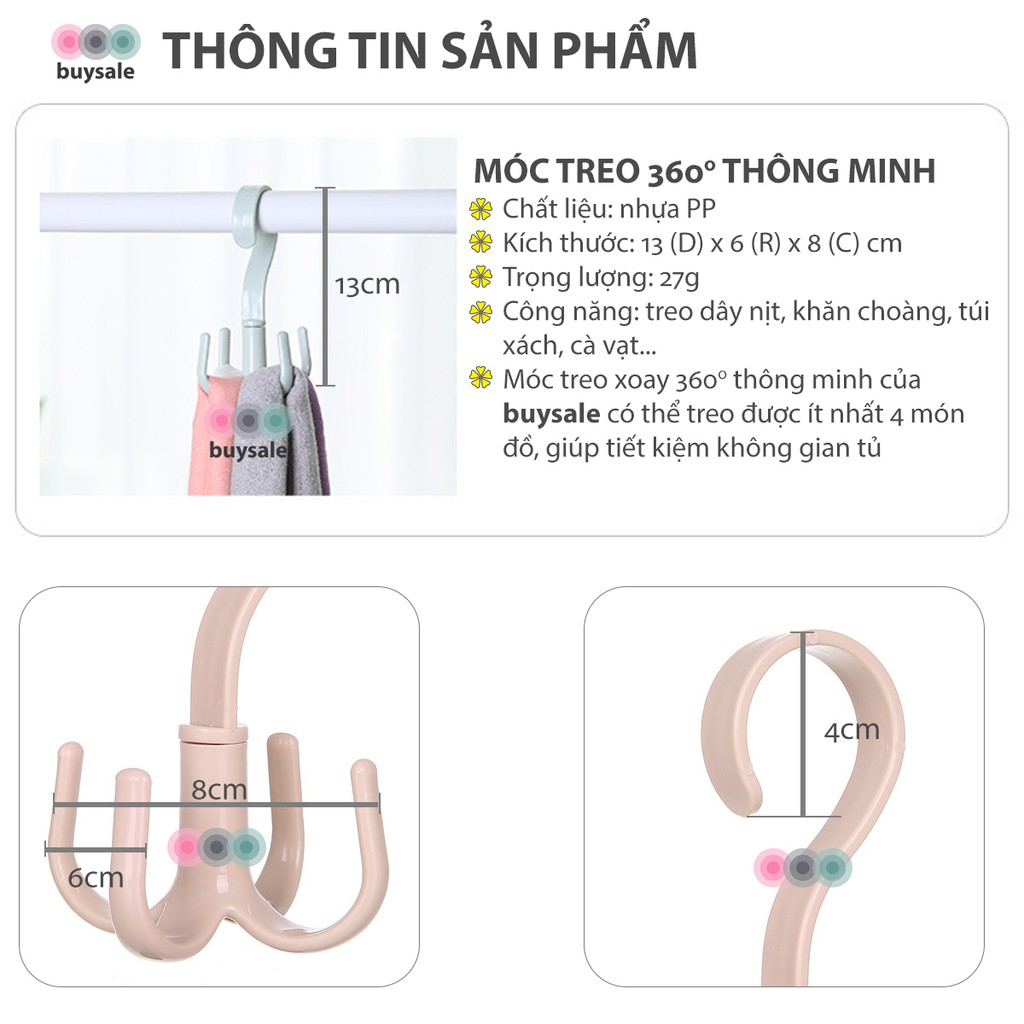 Nhà cửa & Đời sống > Sắp xếp nhà cửa > Móc treo || Móc thông minh treo cà vạt, móc xoay 360 độ treo khăn choàng, dậy nịt, túi xách tiết kiệm không gian tủ đồ - BUYSAL100Còn hàng