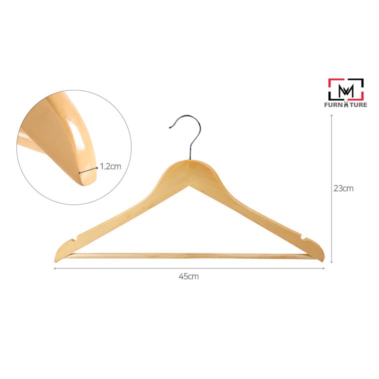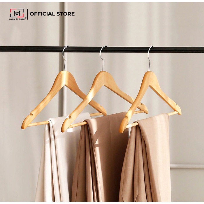- Móc gỗ tinh tế nhưng vẫn đảm bảo giữ quần áo nặng nhất