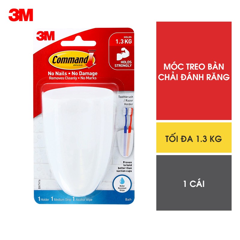 Khay đựng bàn chải đánh răng Command 3M chịu lực 1.3kg - Độ bền cao, bám cực chắc, tháo cực dễ, chống thấm nước BATH16