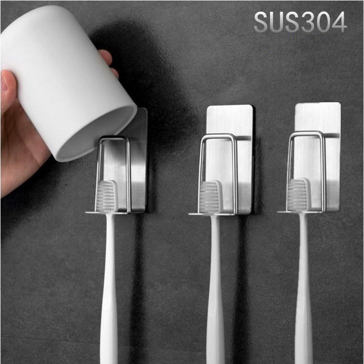 - Móc dán tường inox để bàn chải đánh răng , ly có kích thước nhỏ gọn, không chiếm diện tích, không gian trong nhà tắm.