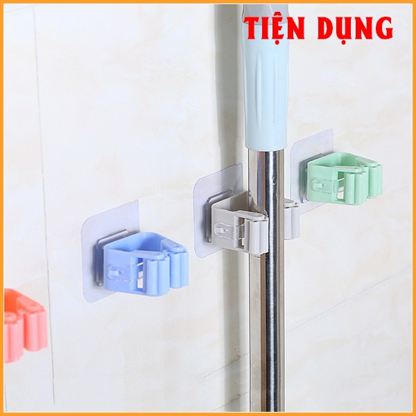 - Tiện ích: . Móc kẹp treo cây lau nhà giúp bạn giữ cây lau nhà luôn khô ráo, không làm hư hại mặt gạch. . Không cần phải khoan tường gắn đinh, dán móc bằng keo 2 mặt, khả năng chịu lực tốt đến 6 kg. . Ngoài ra, bạn có thể dùng treo các vật dụng khác (chổi, cây lau kính,…) . Mặt keo dính tốt trên mặt nhẵn như gạch men, đá cẩm thạch, thủy tinh…