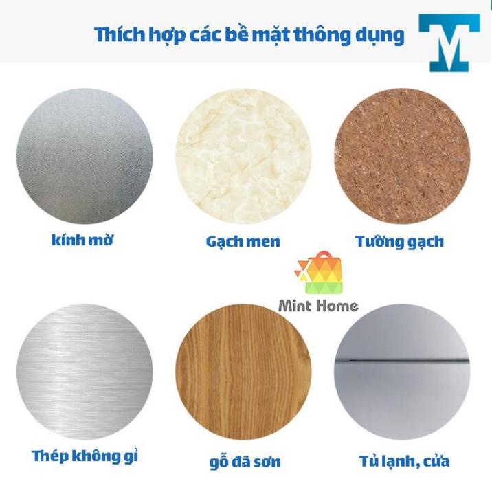 Miếng dán chỉ dính chặt trên bề mặt láng phẳng: gạch men, kính, bề mặt tủ lạnh, mặt đá...