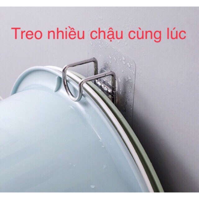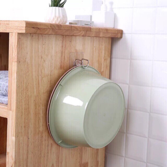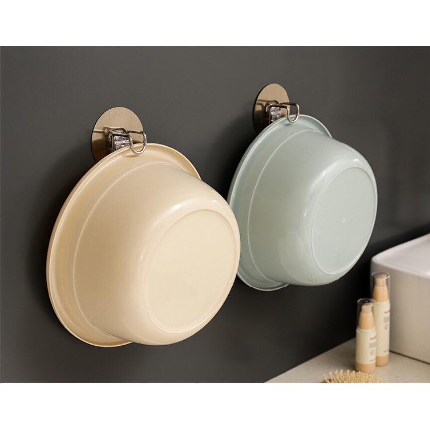 Móc treo chậu kèm miếng dán (TL.9524)Giải pháp thông minh để cất gọn và làm khô ráo đống chậu lộn xộn trong nhà tắm/ khu giặt đồ, thay vì việc để nằm hoặc dựng chậu vào góc chiếm mất một phần sàn nhà.
