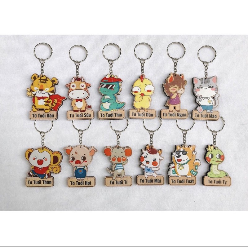 Móc treo chìa khoá bằng gỗ hình 12 con giáp