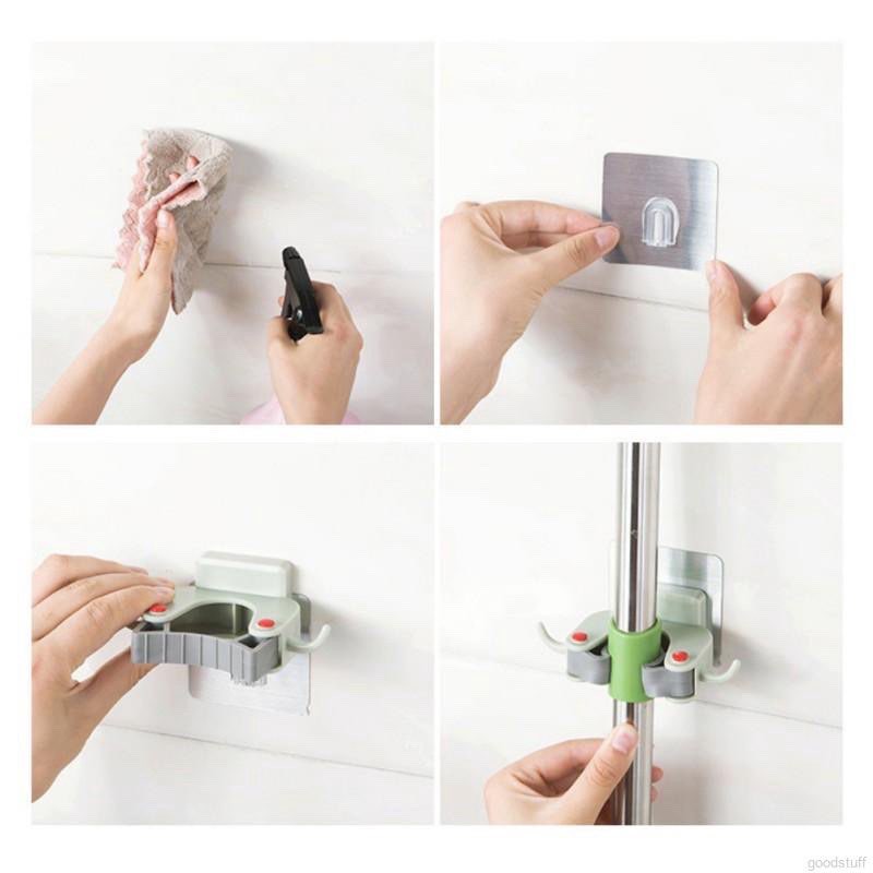 - Móc treo đồ đa năng- Móc kẹp treo cây lau nhà dán tường giúp giữ cây lau nhà luôn khô ráo, không làm hư hại mặt gạch.