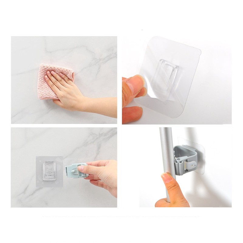 Móc Dán Tường Kẹp Giữ Cây Lau Nhà, Treo Chổi