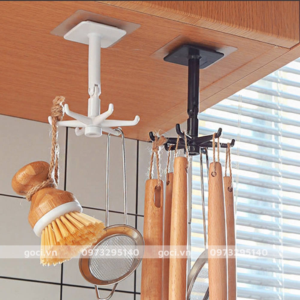 - Mỗi móc có đủ 6 cạnh cho bạn nhiều sự lựa chọn hơn như treo dụng cụ nấu ăn, thìa, muôi, lót nồi... dụng cụ nhà bếp