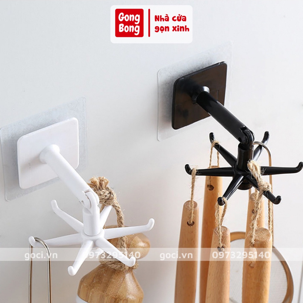 Móc treo dán tường 6 cạnh xoay tròn đa năng siêu dính 2 chế độ thẳng vuông góc tiện dụng treo đồ dùng nhà bạn