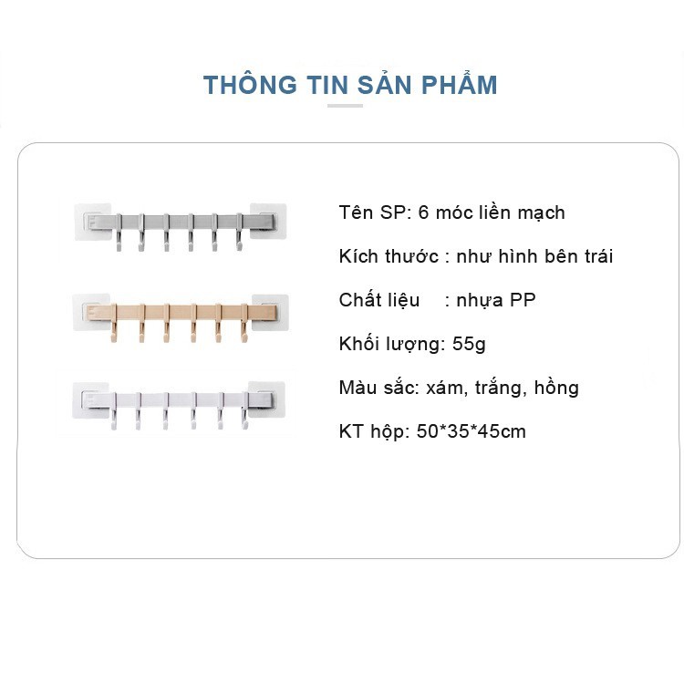 Móc treo dán tường nhà tắm nhà bếp 6 móc di động siêu chắc không khoan đục✨Chi tiết sản phẩm: