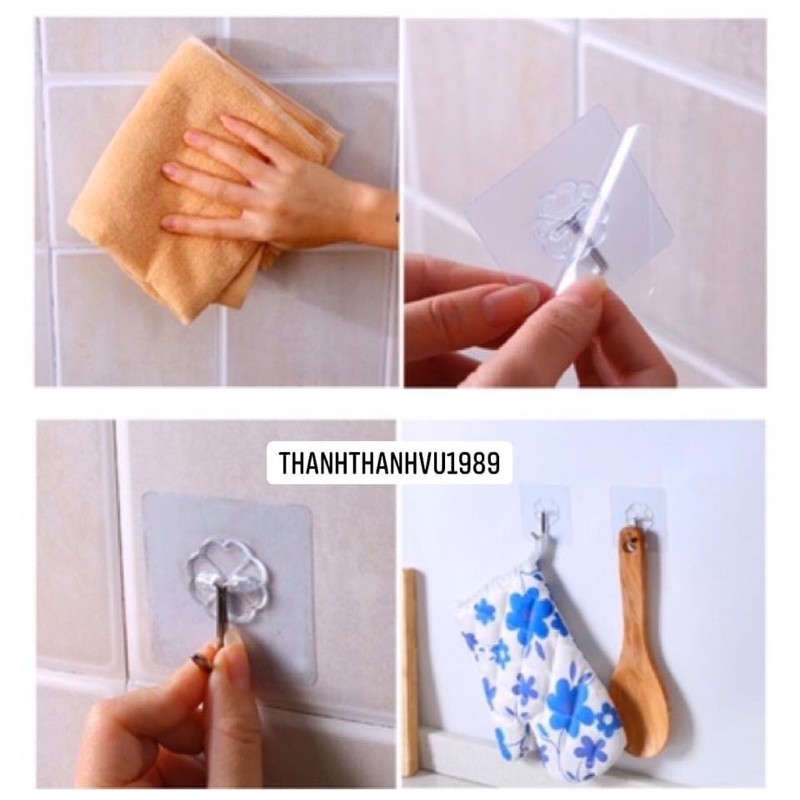 🎆Móc treo dán tường trong suốt chịu lực siêu dính, siêu chắc rất tiện lợi trong ngôi nhà của bạn. Thay vì phải khoan đục đóng đinh để treo đồ bạn có thể sử dụng móc treo dán tường để treo móc đồ vật như khăn lau, túi đồ, chìa khoá...🆘 Lưu ý: Móc dán được trên BỀ MẶT PHẲNG như gỗ, kính, đá. Móc KHÔNG DÁN ĐƯỢC LÊN TƯỜNG. Móc đã dán khi bóc ra không tái sử dụng lại được nữa.