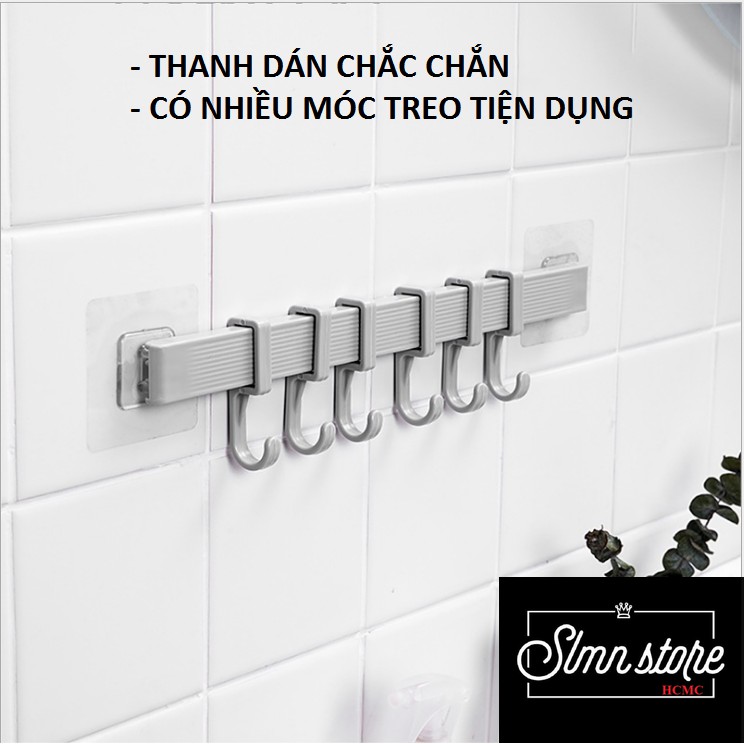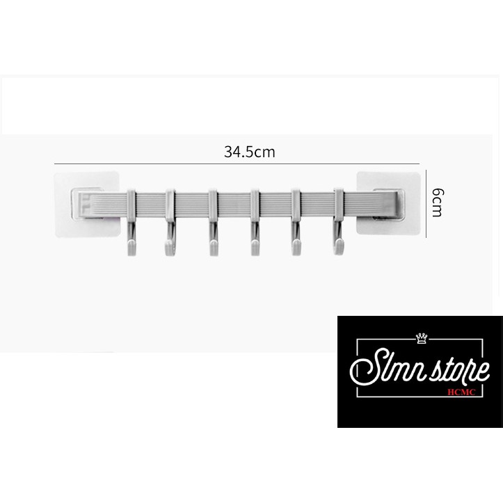 Thanh móc treo dán tường, tủ quần áo, giày dép gồm 6 móc chịu lực móc 2kg/móc. SD1_MTSC-Thanh