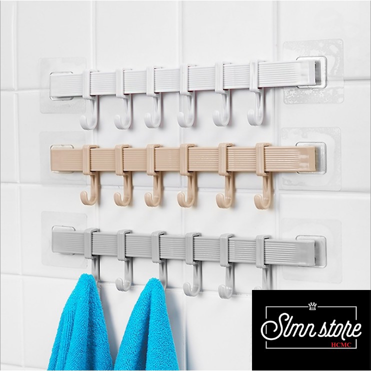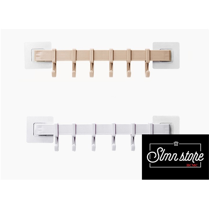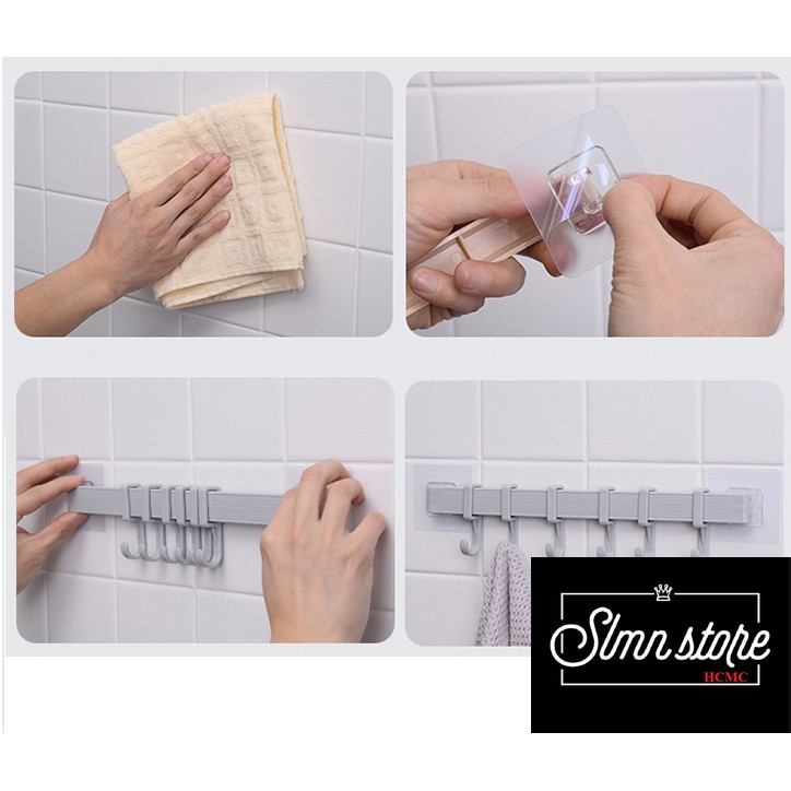 Giới thiệu Thanh móc treo dán tường, tủ quần áo, giày dép gồm 6 móc chịu lực móc 2kg/móc. SD1_MTSC-Thanh