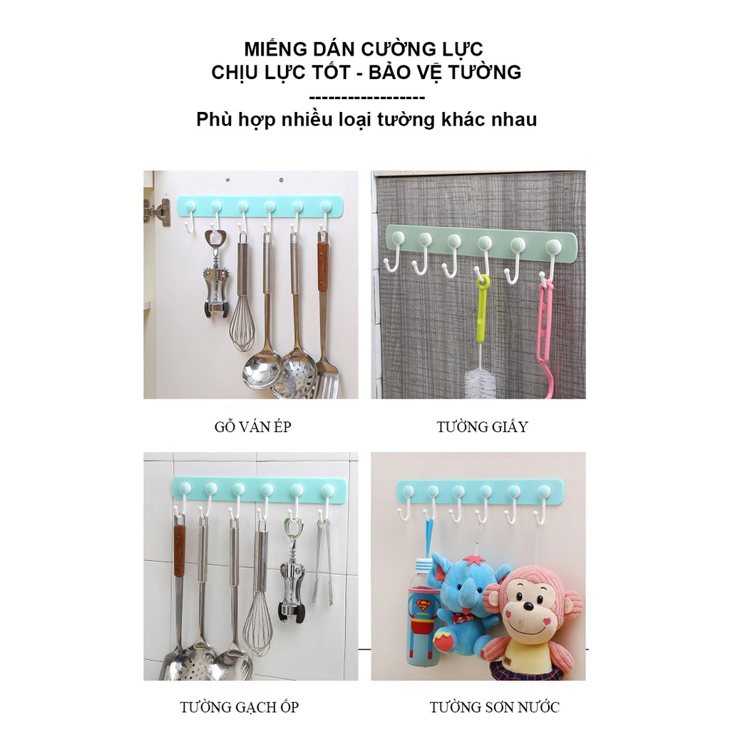 **Giá treo dán tường tiện dụng, không làm hỏng bức tường nhà bạn. Đặc biệt cả 6 móc đều xoay được theo hướng 360 độ thích hợp với mọi không gian rộng và hẹp.