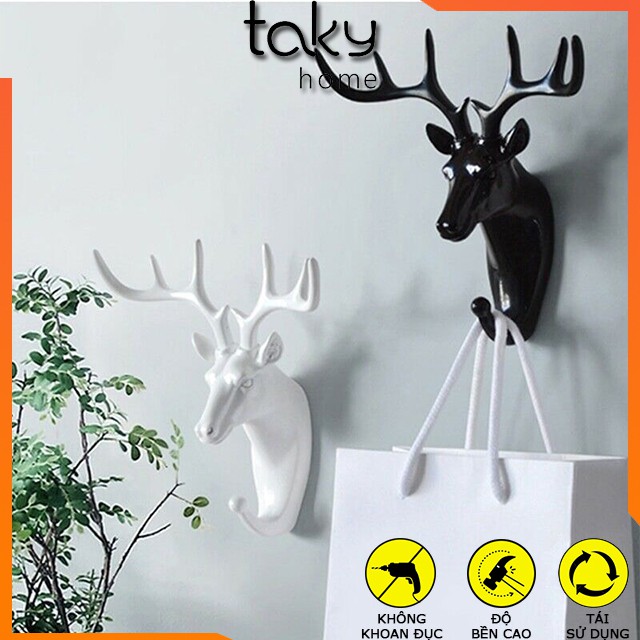 Móc Dính Tường Đầu Hươu Trang Trí Bắt Mắt, Móc Treo Đồ Đa Năng Tiện Dụng, Móc Treo Tường, Siêu Chắc Chắn, Sử Dụng Nhựa An Toàn Với Môi Trường. TakyHome- Móc Đầu Hươu có thể treo bằng cách dán móc dính liền mạch vào tường mà không cần khoan tường.