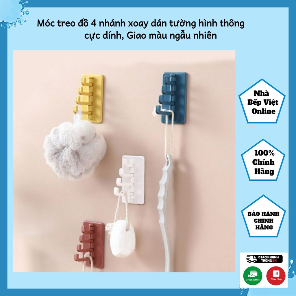 Móc treo đồ 4 nhánh xoay dán tường hình thông cực dính màu ngẫu nhiên