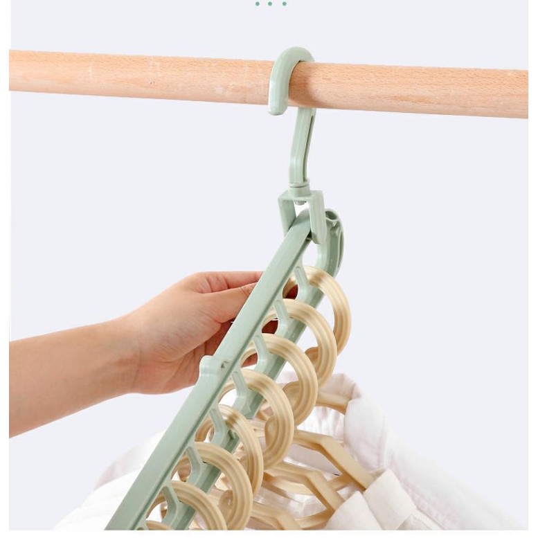 MÓC TREO ĐỒ 9 LỖ THÔNG MINH XOAY 360 ĐỘ CÓ THỂ XẾP GỌN THEO CHIỀU DỌC GIÚP TIẾT KIỆM KHÔNG GIAN TỦ ĐỒ