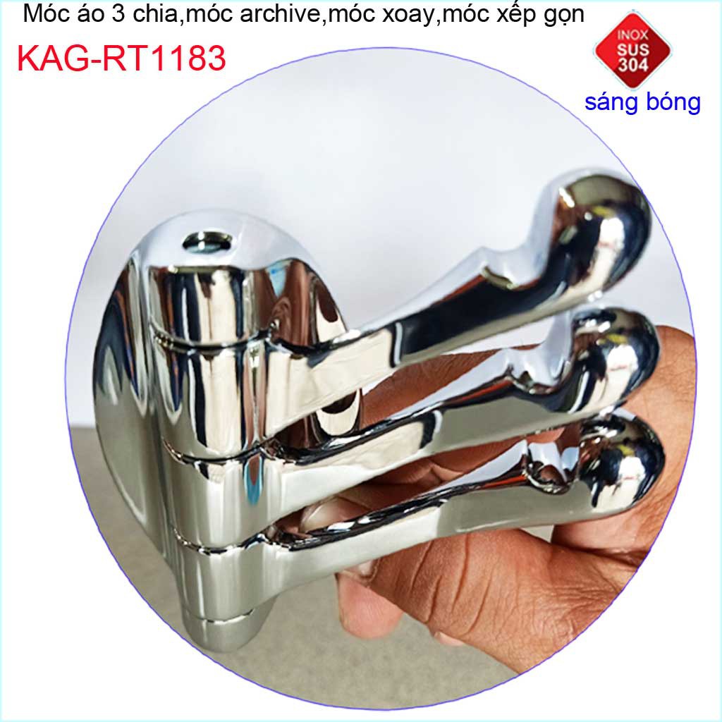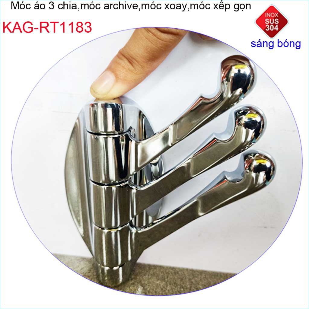 Móc treo đồ cao cấp Inox, móc áo phòng tắm Inox 304, móc 3 chia xoay KAG-RT1183