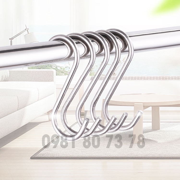 Móc treo inox 304 chữ S treo quần áo chịu lực, đa năng loại dày (nhiều size)Kích Thước: 5cm, 7cm, 9cm